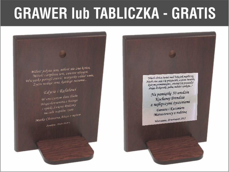 - z możliwością indywidualnego graweru lub tabliczki z grawerem GRATIS