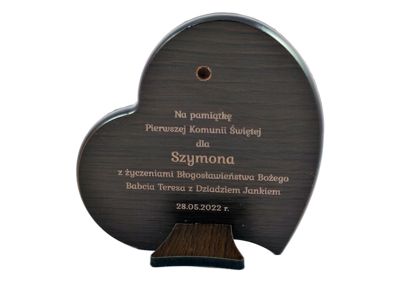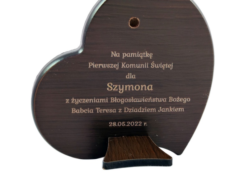 Grawer dedykacji wykonany jest bezpośrednio w drewnie lub na osobnej dołączonej tabliczce.