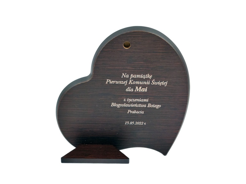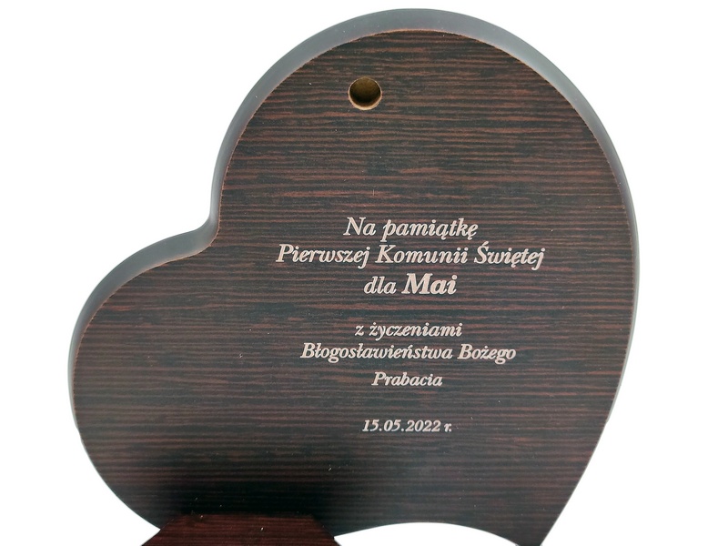 Grawer dedykacji wykonany jest bezpośrednio w drewnie lub na osobnej dołączonej tabliczce.