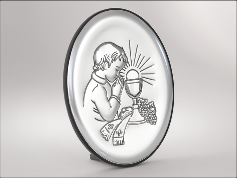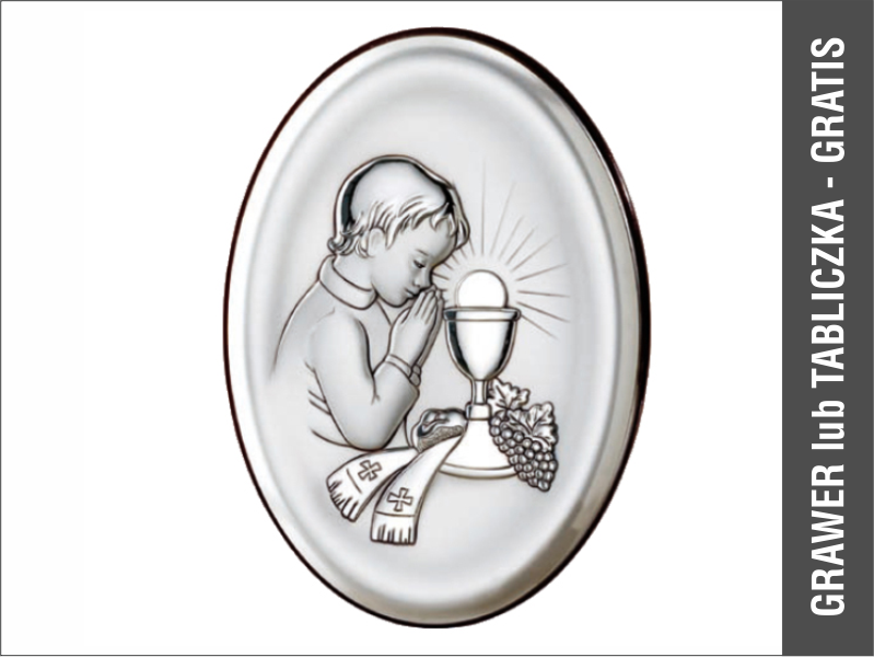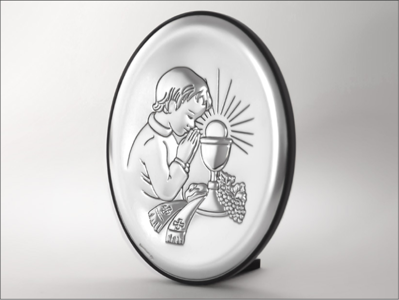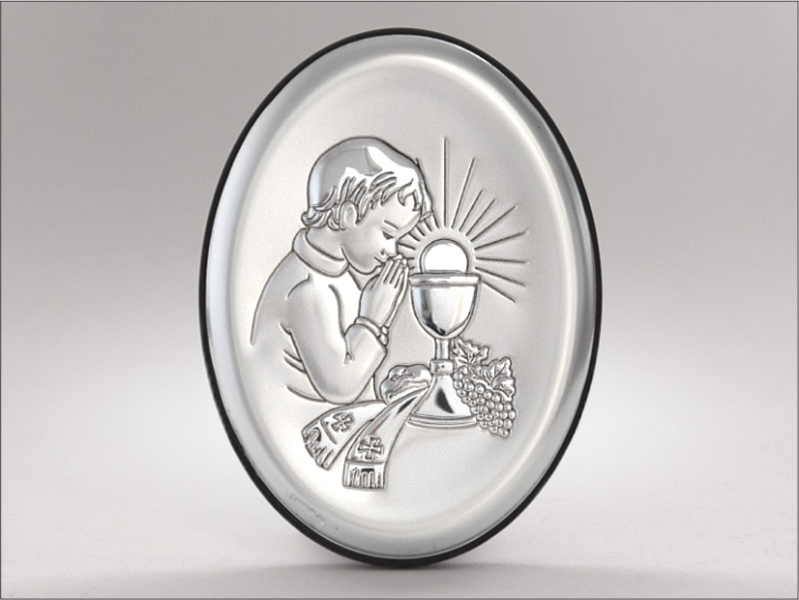 Srebrny Obrazek "Pamiątka I Komunii Św. dla chłopczyka 6342O owalny".