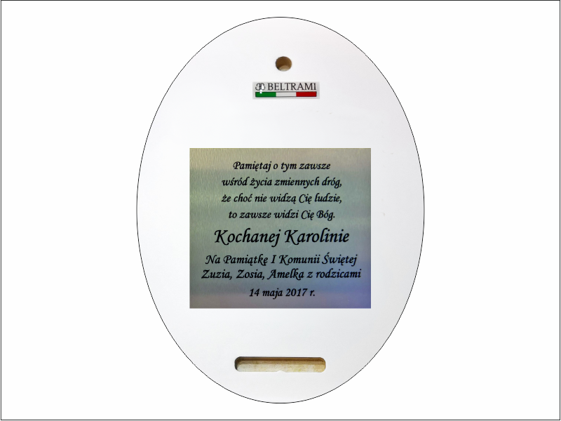 Na srebrnym obrazku możemy wykonać indywidualny grawer dedykacji.