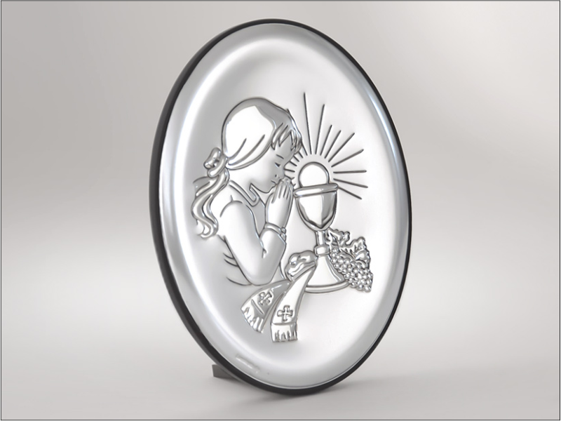 Srebrny Obrazek "Pamiątka I Komunii Św. dla dziewczynki 6342A owalny".