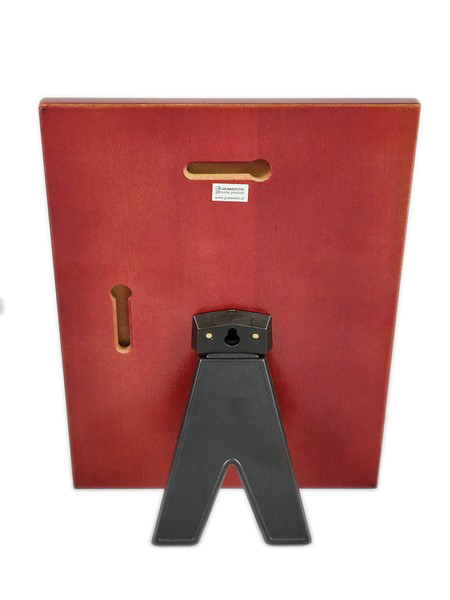 Całość przymocowana jest do lakierowanego wiśniowego podkładu drewnianego.
