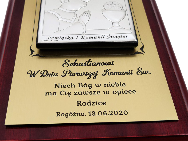 - ze złotej tabliczki z wygrawerowaną dedykacją,
