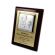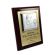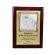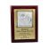 Upominek ma formę srebrnego obrazka oraz złotej tabliczki z dedykacją umieszczonych na podkładzie drewnianym.