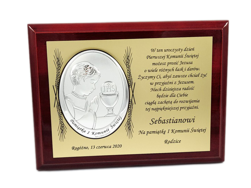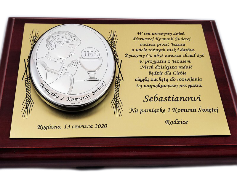 Wyjątkowy pamiątkowy upominek z okazji przyjęcia I Komunii Świętej dla chłopczyka.