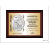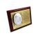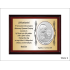 Upominek ma formę srebrnego obrazka umieszczonego na złotym grawerowanym laminacie i podkładzie drewnianym.