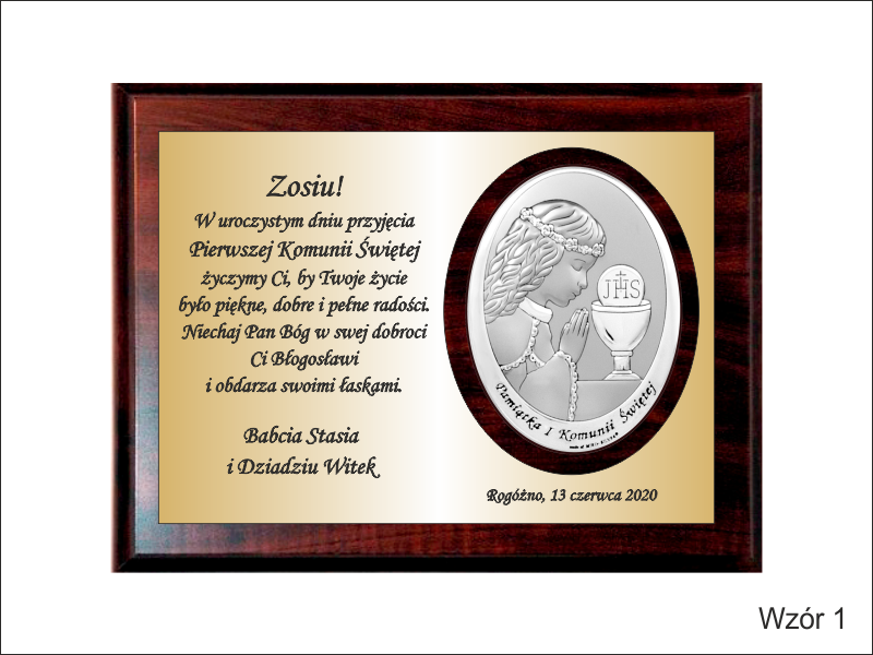 Istnieje możliwość wykonania pamiątki wg jednego z przedstawionych wzorów lub wg indywidualnych ustaleń i projektu.