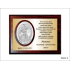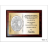Upominek ma formę srebrnego obrazka oraz złotej tabliczki z dedykacją umieszczonych na podkładzie drewnianym.