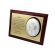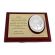 Upominek ma formę srebrnego obrazka oraz złotego grawerowanego laminatu umieszczonych na podkładzie drewnianym.