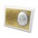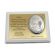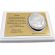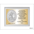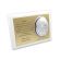 Upominek ma formę srebrnego obrazka oraz złotego grawerowanego laminatu umieszczonych na białym podkładzie drewnianym.