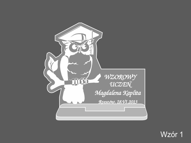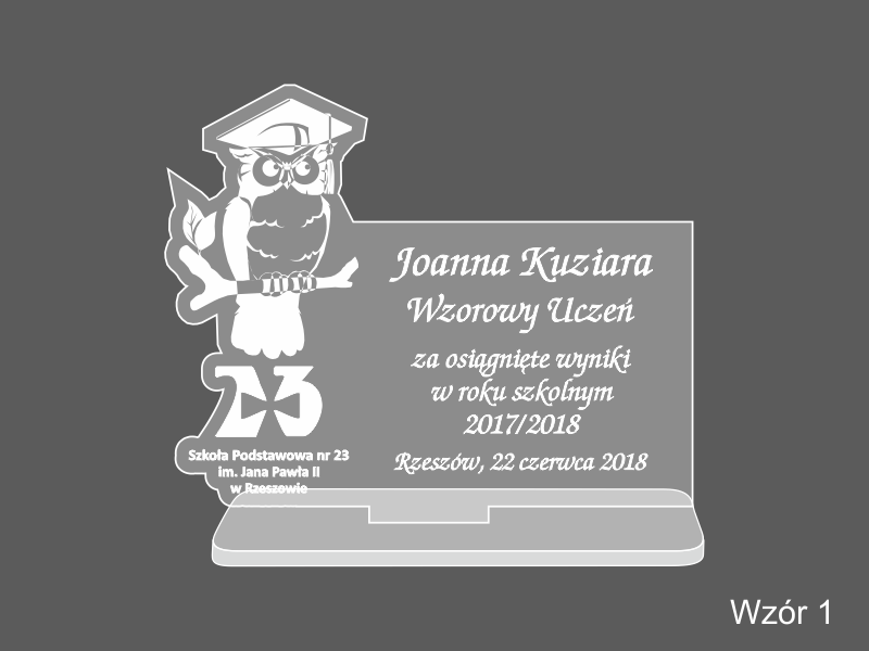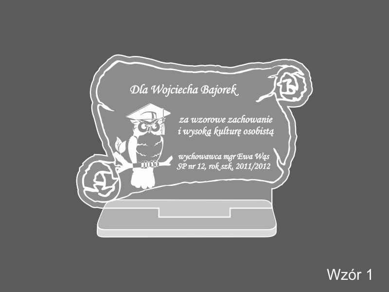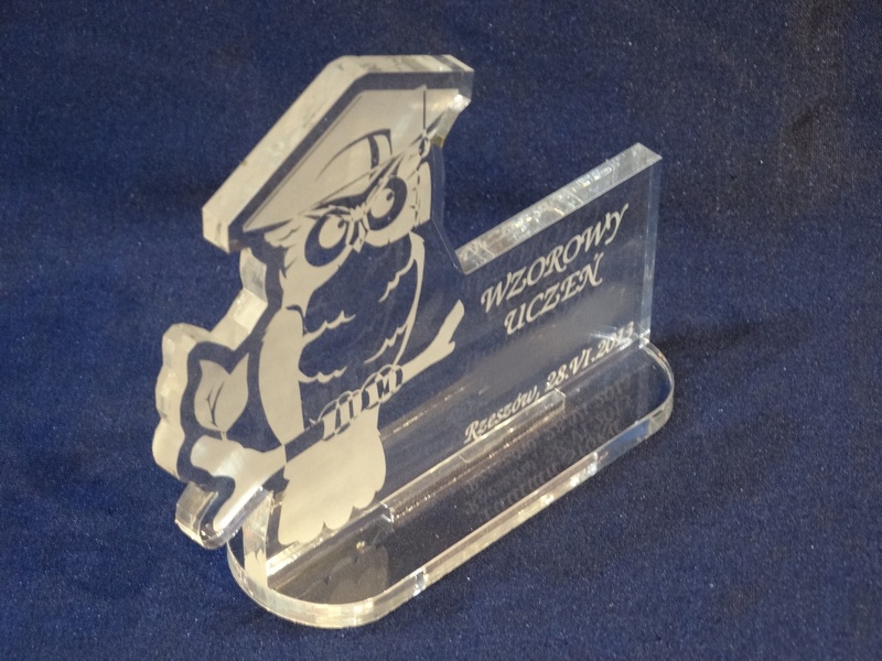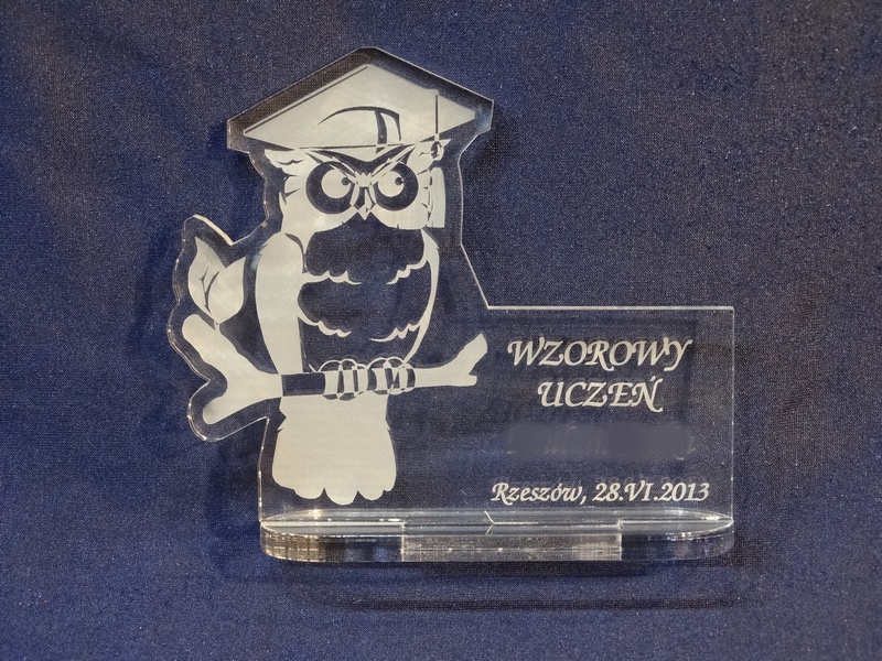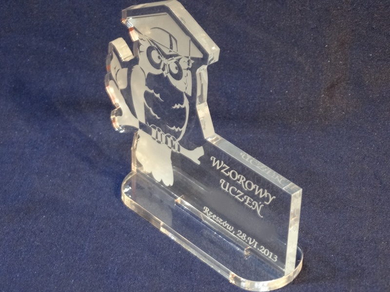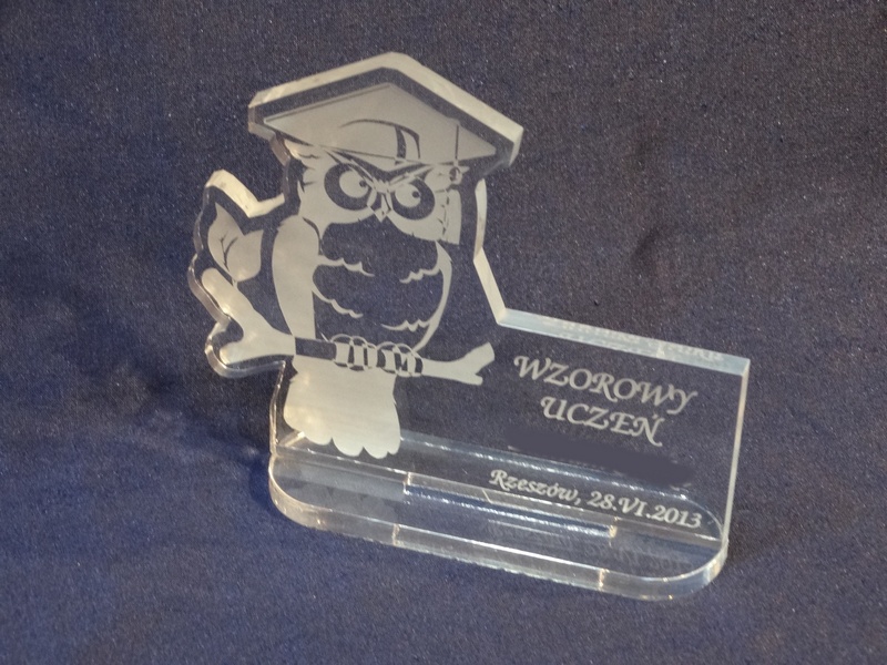 Pamiątkowa statuetka z pleksi dla absolwenta szkoły lub wzorowego ucznia.