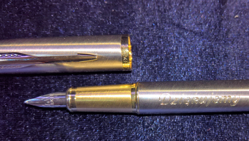 Na powierzchni pióra wykonujemy grawerowanie dedykacji, imienia i nazwiska, inicjałów, grafiki lub loga.