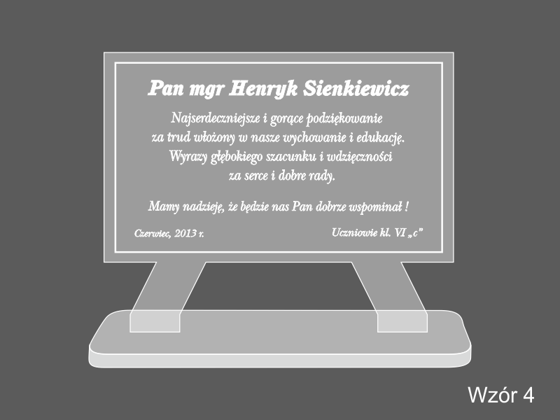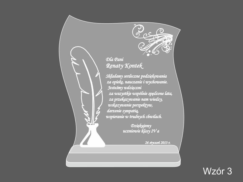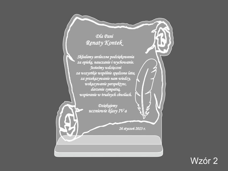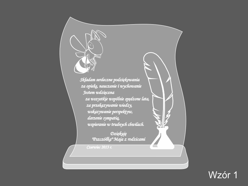 Istnieje możliwość wygrawerowania dedykacji wg indywidualnych ustaleń i projektu.