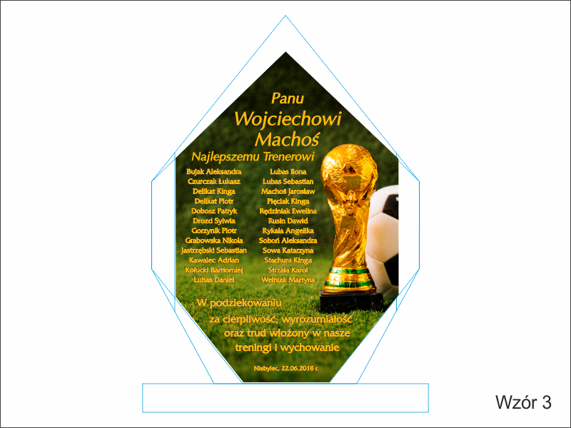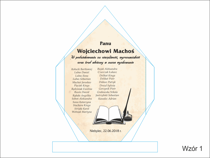 Istnieje możliwość nadruku dedykacji wg indywidualnych ustaleń i projektu lub wg jednego z wzorów.