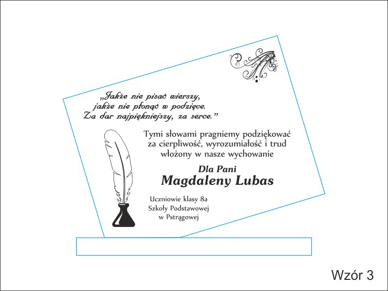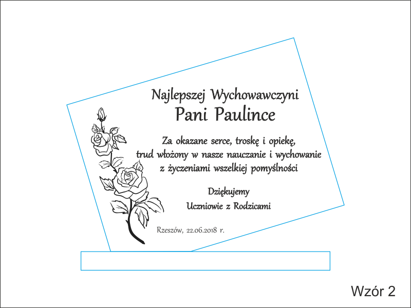Istnieje możliwość graweru dedykacji wg indywidualnych ustaleń i uzgodnionego projektu lub wg jednego z wzorów.