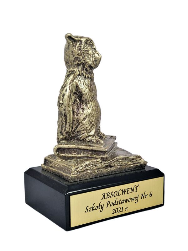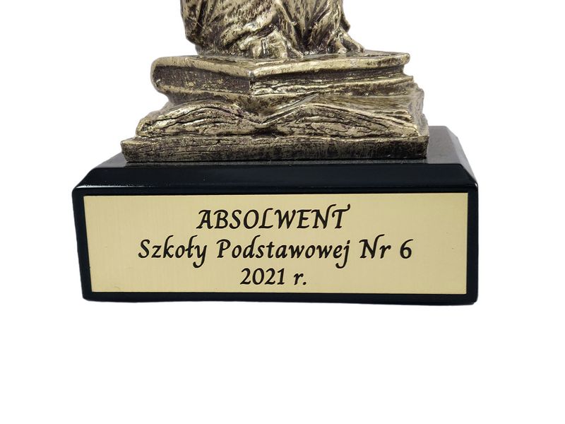 Na cokole statuetki wykonany jest pamiątkowy grawer dedykacji dla ucznia kończącego nauczanie, szkołę lub klasę.