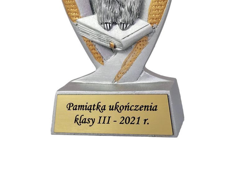 Na cokole statuetki wykonany jest pamiątkowy grawer dedykacji dla ucznia kończącego nauczanie, szkołę lub klasę.