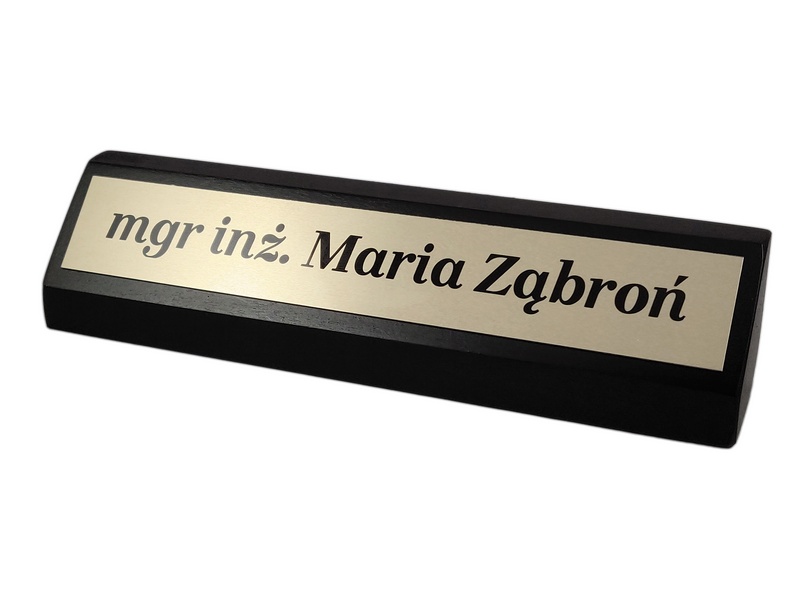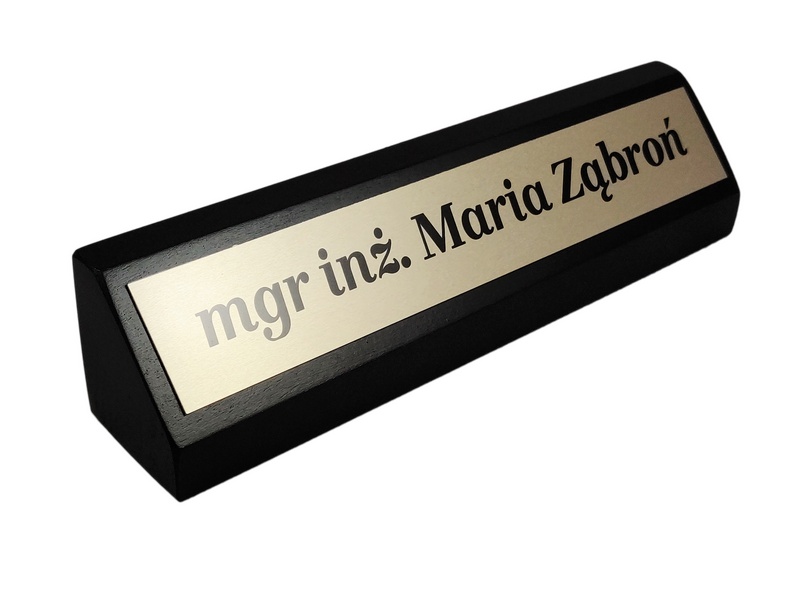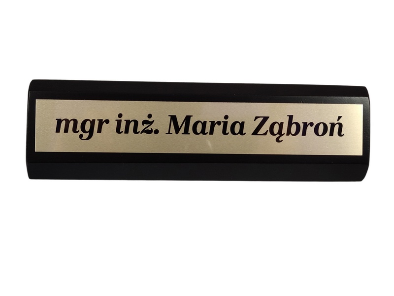 Na tabliczce wykonany jest nadruk lub grawer dedykacji.