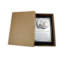 - Zdjęcia produktów przedstawiają przybliżony ich wygląd i mają charakter poglądowy. Finalnie wykonany zamówiony produkt z grawerem lub nadrukiem może różnić się od przedstawionego na zdjęciach w sklepie internetowym. W szczególności dotyczy to odcieni i barwy blachy, laminatu, podkładu drewnianego, szkła, zdobienia wazonu czy kolorystyki graweru lub nadruku.