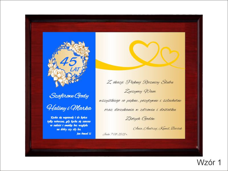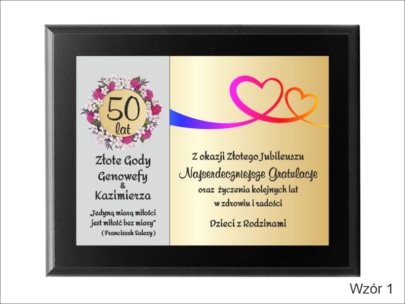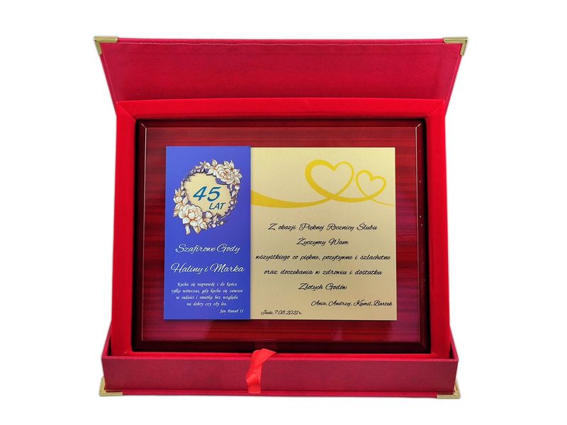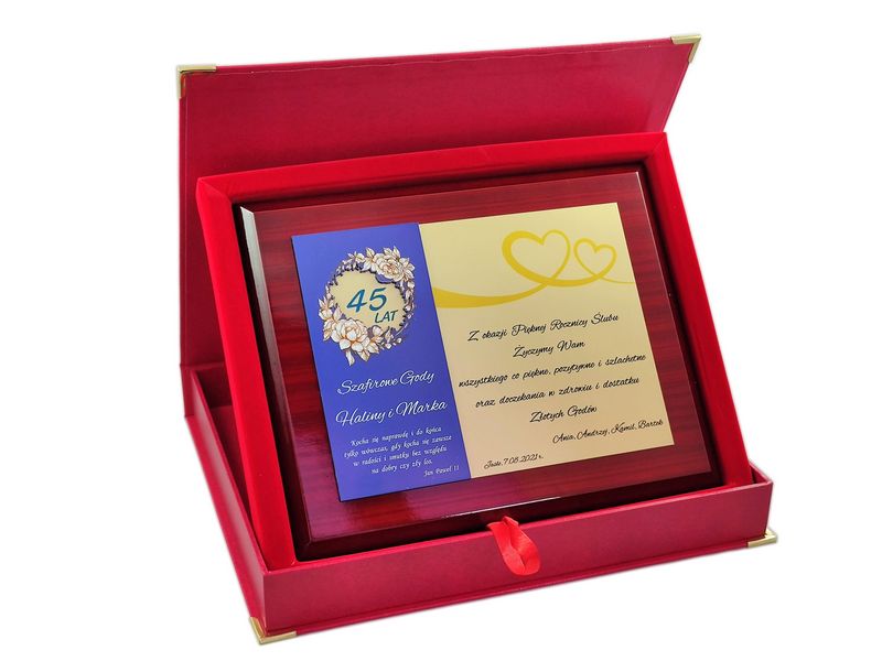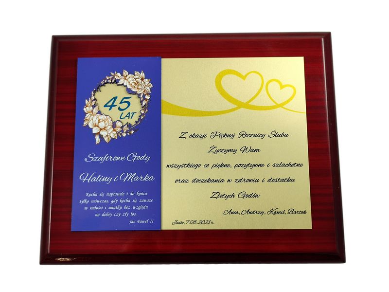 - z blachy z dedykacją umieszczoną na podkładzie,