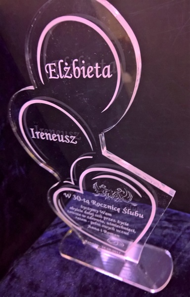 Oprócz dedykacji i ozdobnych elementów istnieje także możliwość wygrawerowania zdjęcia jubilatów.