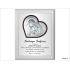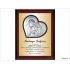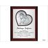 Srebrny obrazek 6432/WM na brązowym drewnie ma kształt serca i przedstawia wizerunek św. Rodziny.