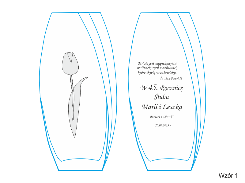 Pamiątkowy grawer na Rocznicę Ślubu można także wykonać na innych modelach wazonów.