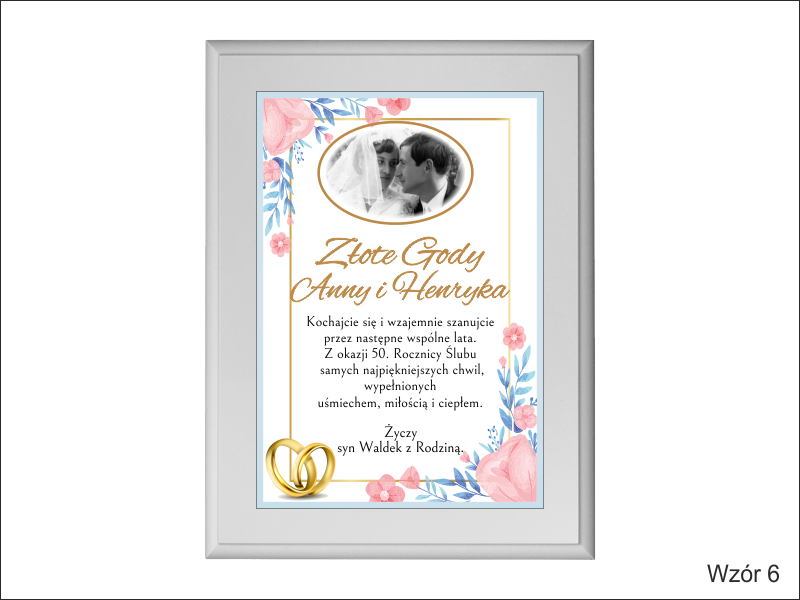Dedykacja, grafiki, ozdobniki czy zdjęcie nadrukowane są na blasze.