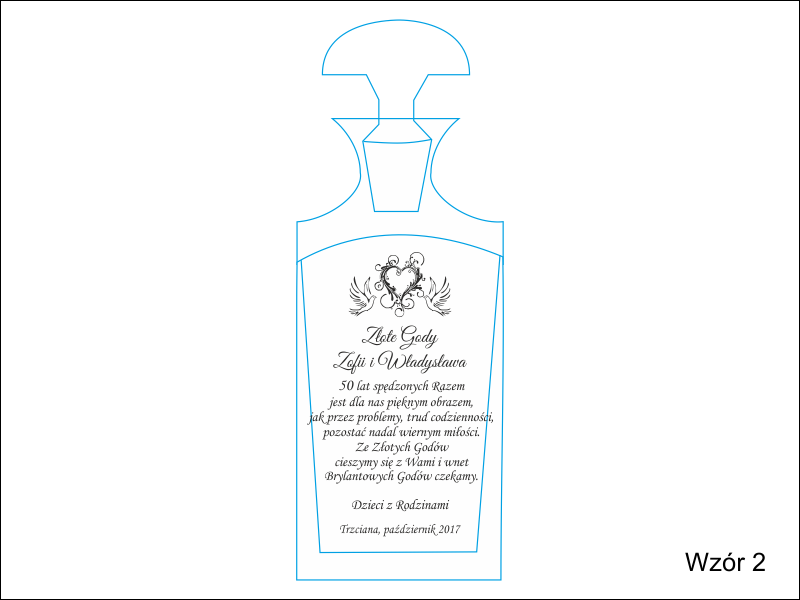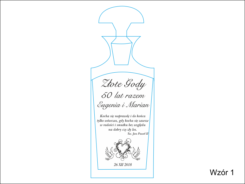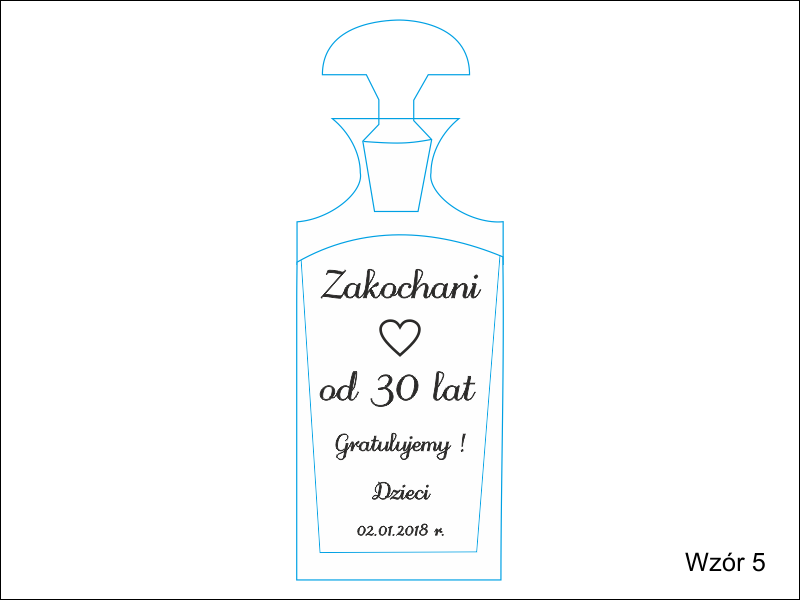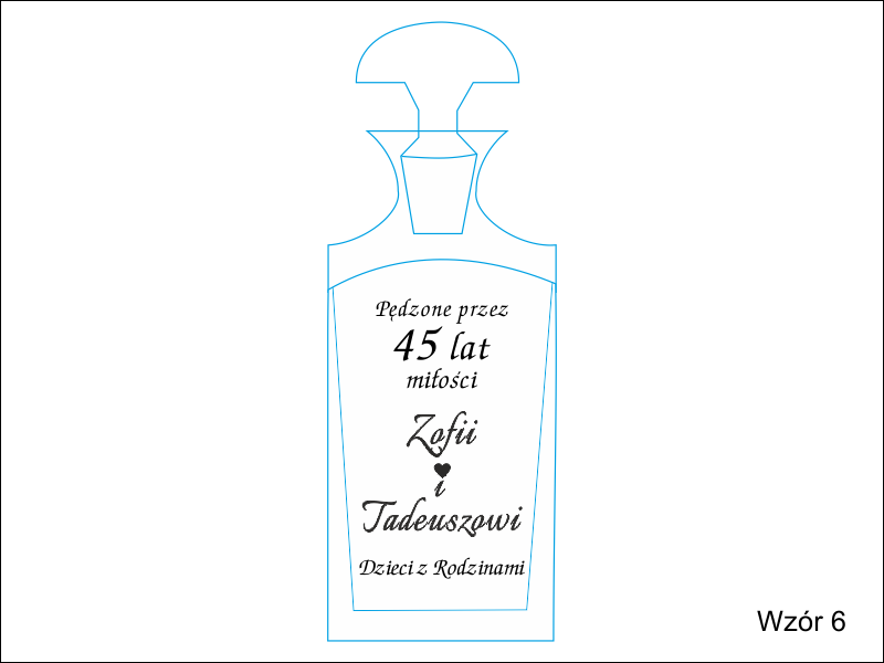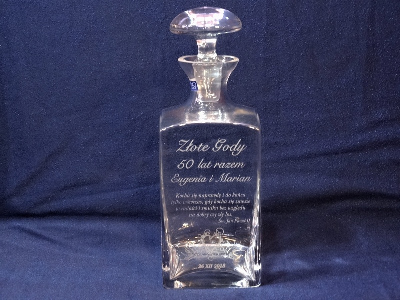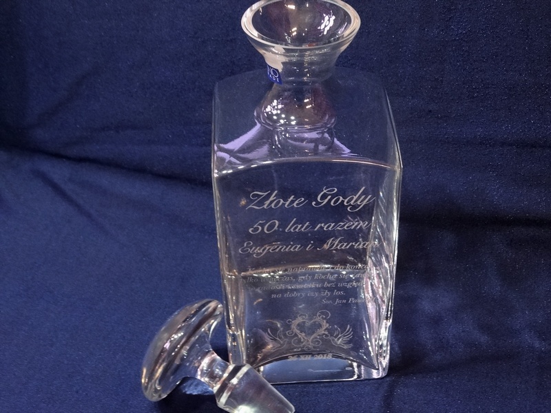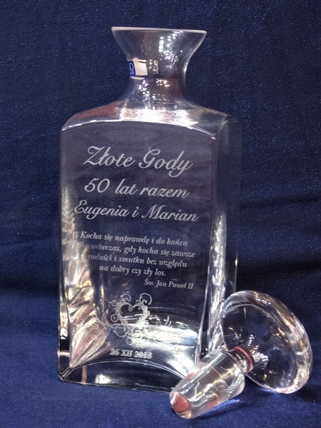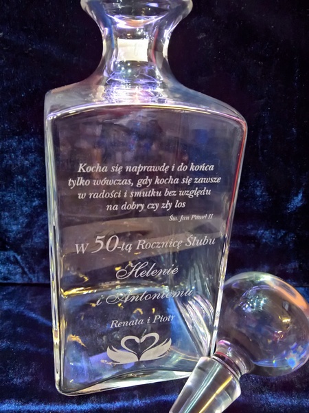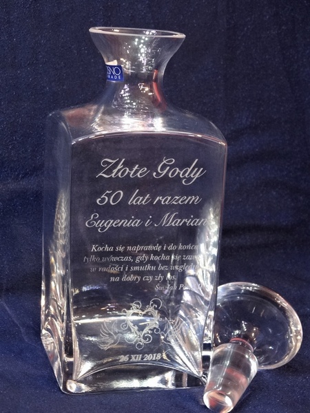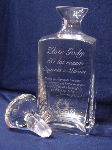 Karafka Krosno Caro z korkiem "Grzybek" z grawerem dedykacji i ozdobnych grafik na pamiątkę Rocznicy Ślubu.