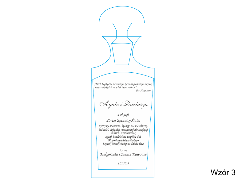 Istnieje możliwość graweru dedykacji wg indywidualnych ustaleń i projektu uzgodnionego z klientem lub wg jednego ze wzorów.