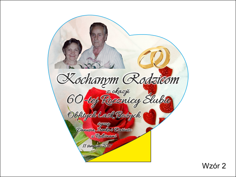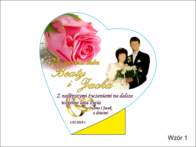 Oprócz dedykacji i ozdobnych grafik istnieje także możliwość nadrukować także zdjęcia Jubilatów.