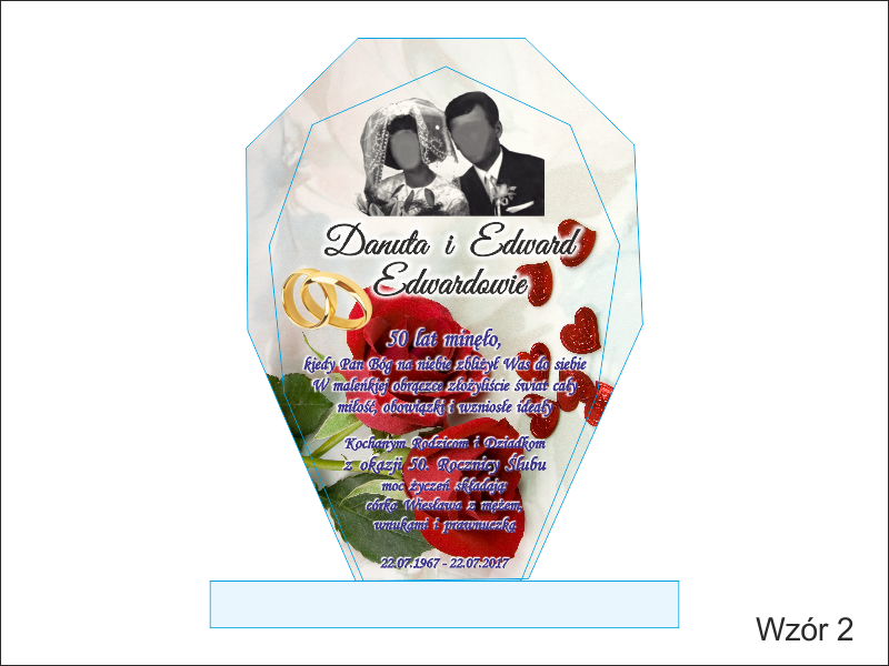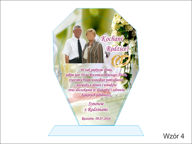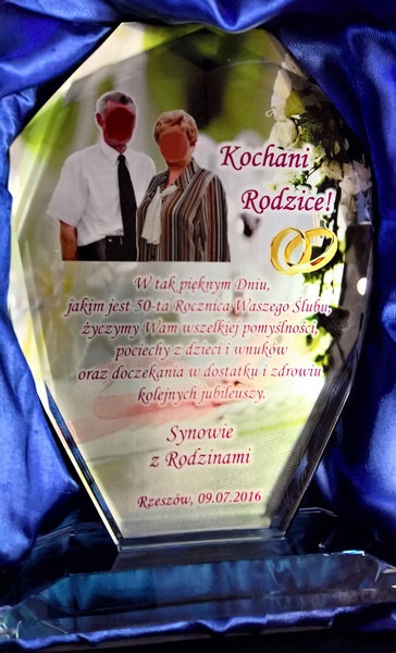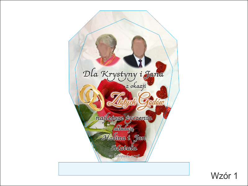 Oprócz dedykacji i ozdobnych grafik istnieje także możliwość nadrukować także zdjęcia Jubilatów.