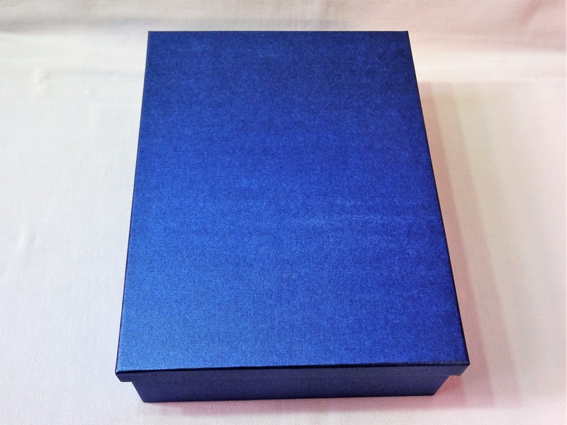 Szkło pakowane jest w ozdobne, kartonowe, wyściełane materiałem, niebieskie etui.