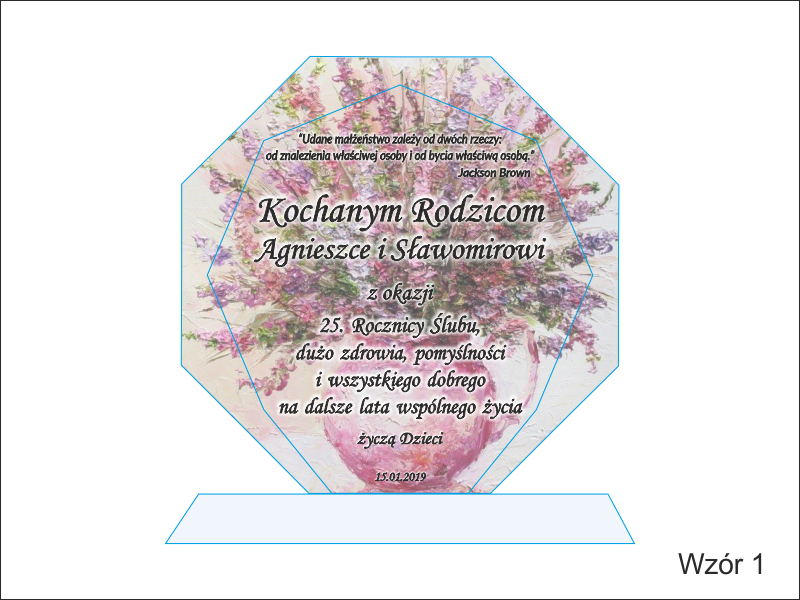 Istnieje możliwość nadrukowania dedykacji wg indywidualnych ustaleń i projektu lub wg jednego z wzorów.