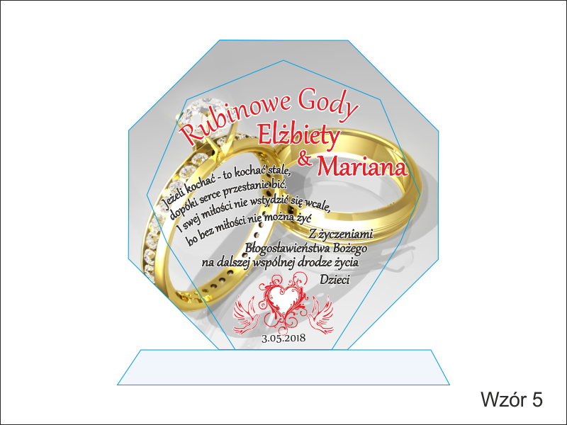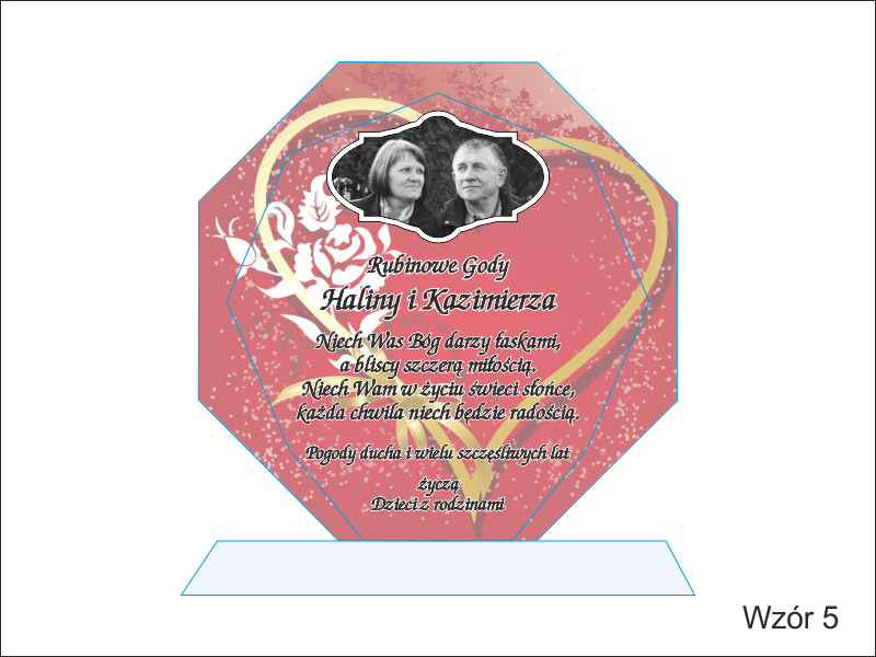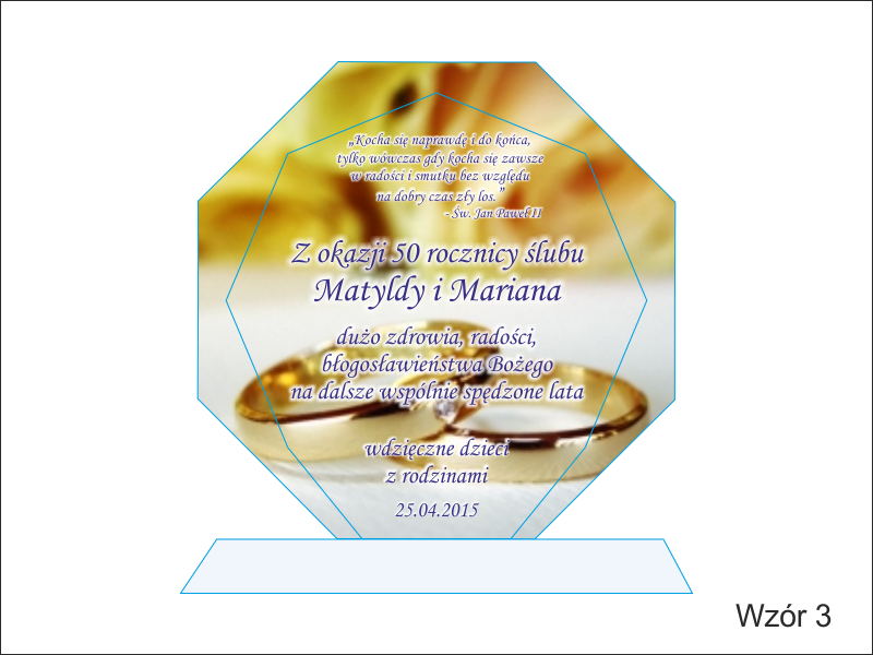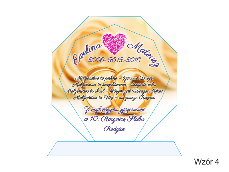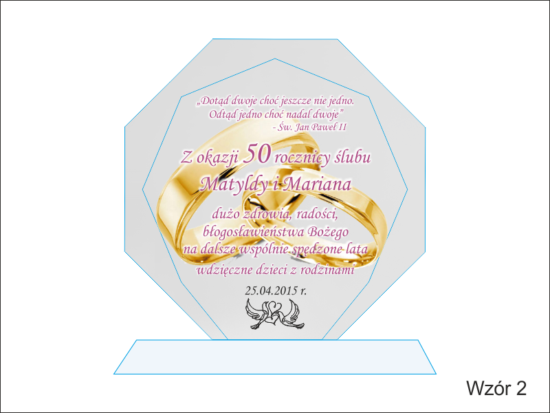Pamiątkowy grawer na Rocznicę Ślubu można także wykonać na innych modelach statuetek szklanych.