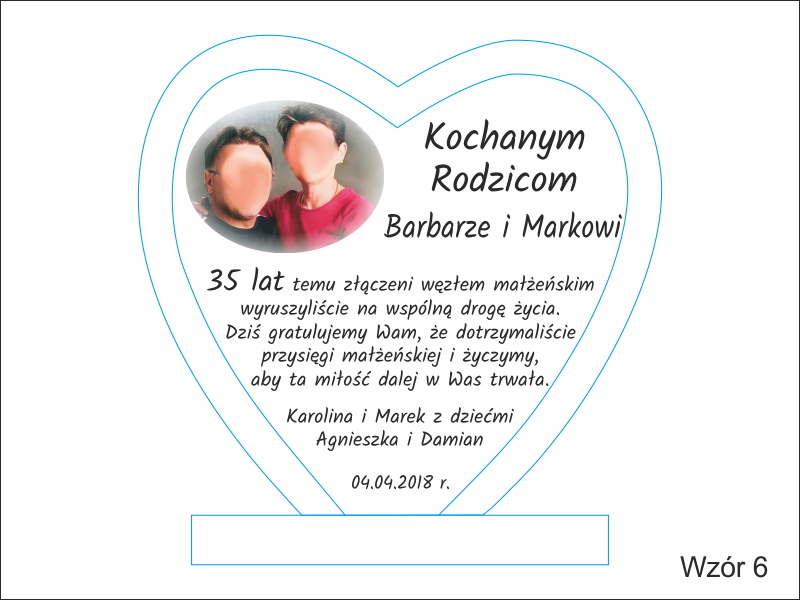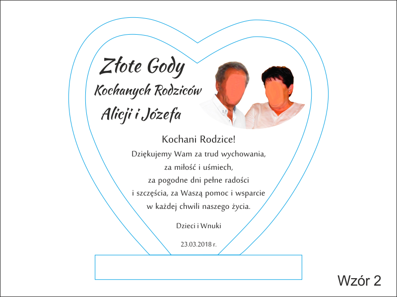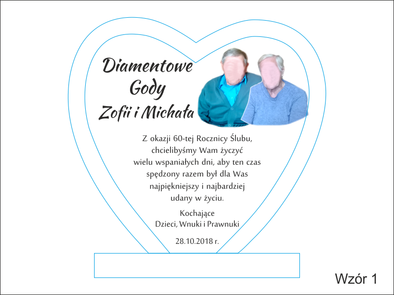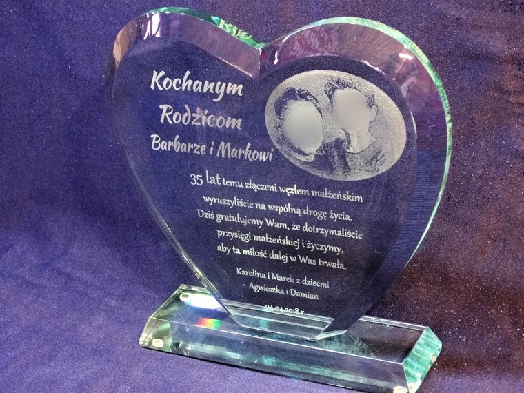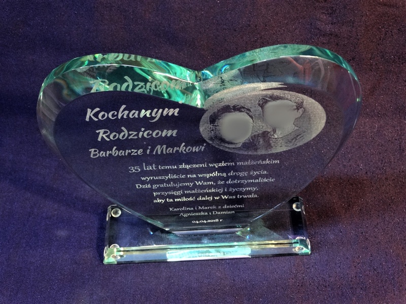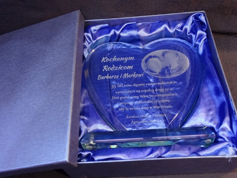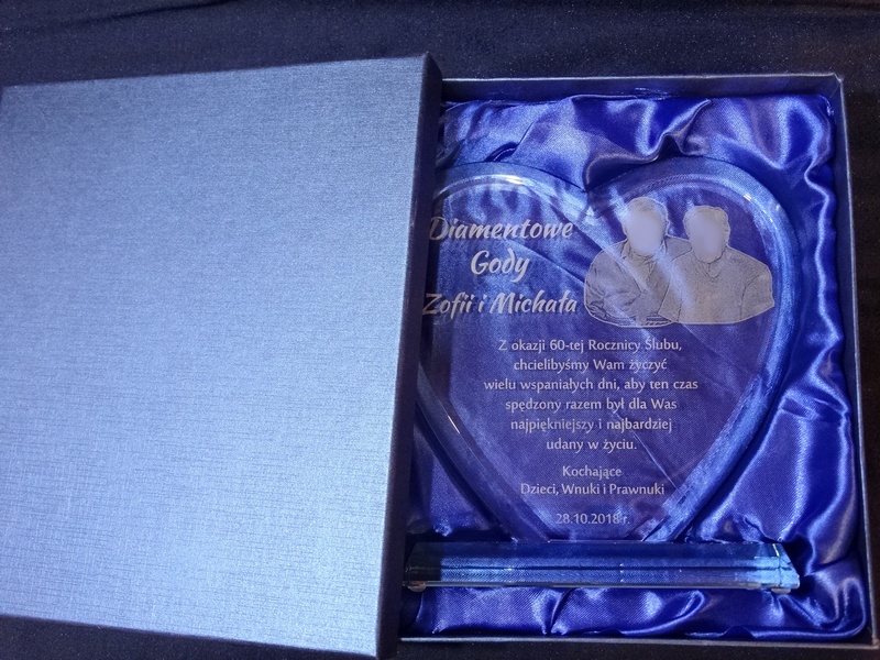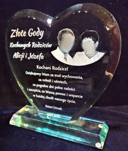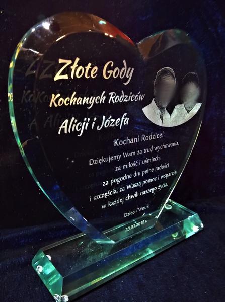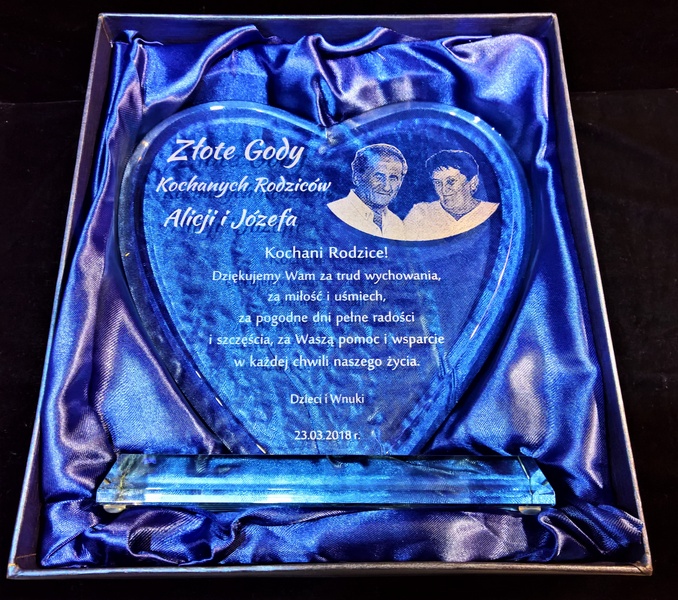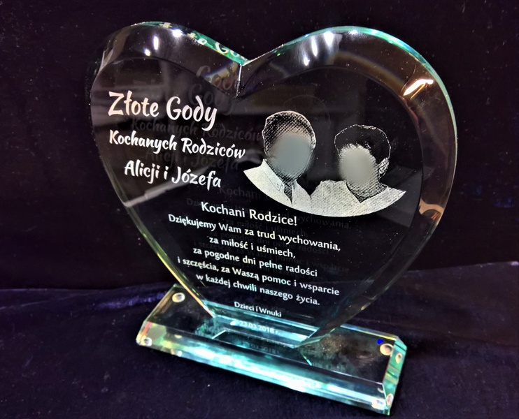 Oprócz dedykacji i ozdobnych grafik istnieje także możliwość wygrawerowania zdjęcia Jubilatów.