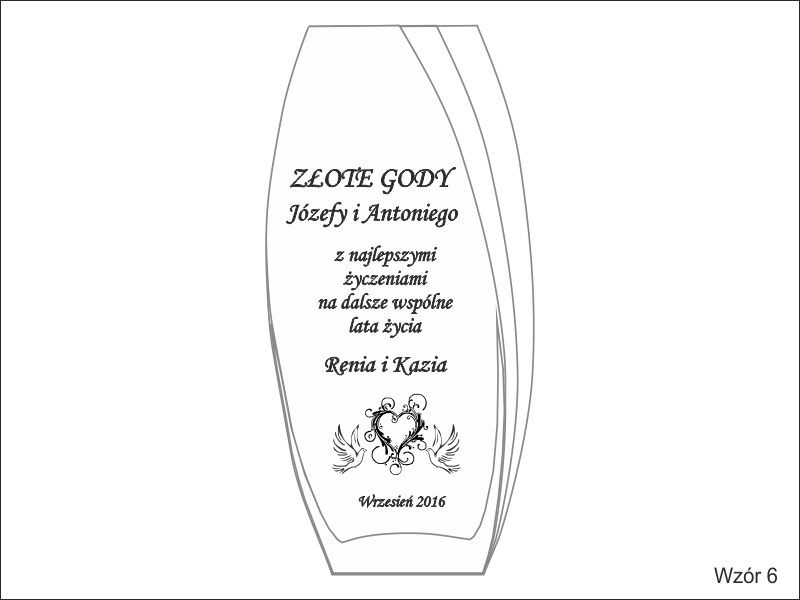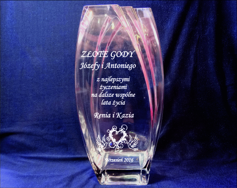 Pamiątkowy grawer na Rocznicę Ślubu można także wykonać na innych modelach wazonów.