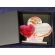Upominek z okazji Roczniy Ślubu w postaci statuetki wykonanej z mlecznej pleksi w kształcie połączonych serc z nadrukiem dedykacji.