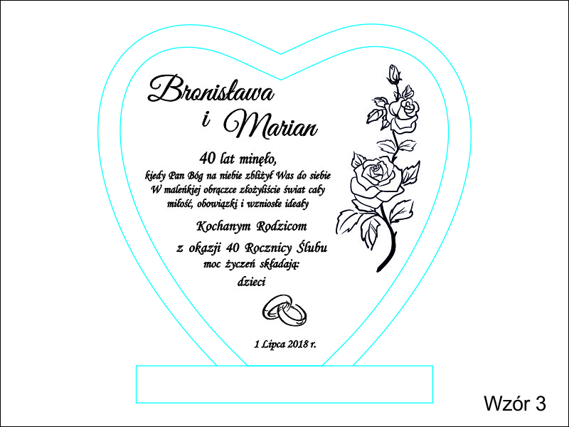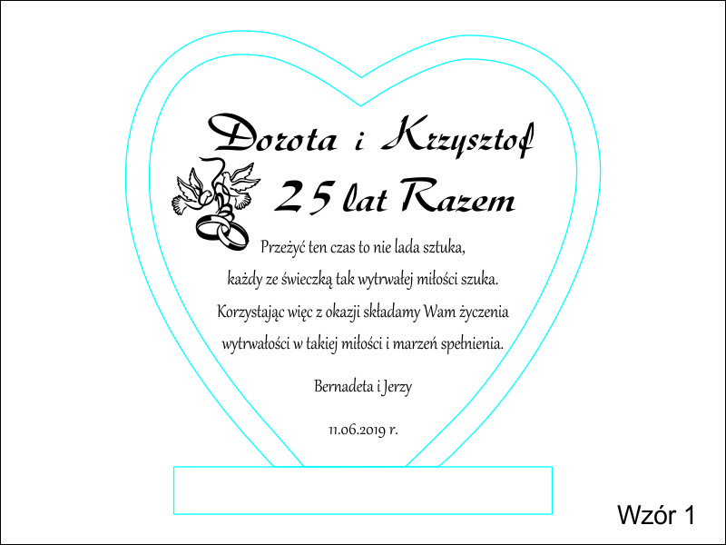 Istnieje możliwość graweru dedykacji wg indywidualnych ustaleń i projektu uzgodnionego z klientem lub wg jednego z wzorów.