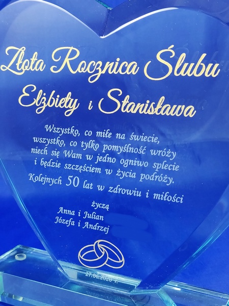 Oprócz dedykacji i ozdobnych grafik istnieje także możliwość wygrawerowania zdjęcia Jubilatów.