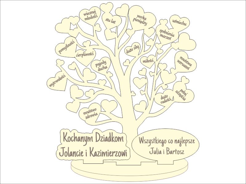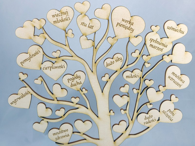 Na drzewku można wykonać grawer dowolnej dedykacji, treści, życzeń.