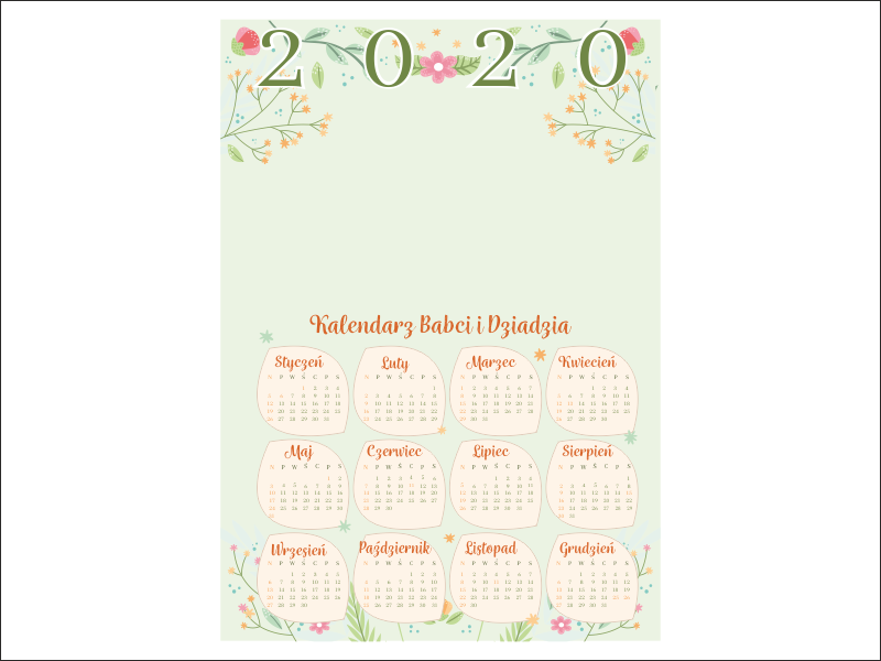 Kalendarz może być wykonany jako pamiątka wspólna dla babci i dziadka, jak również tylko dla babci lub tylko dla dziadka.