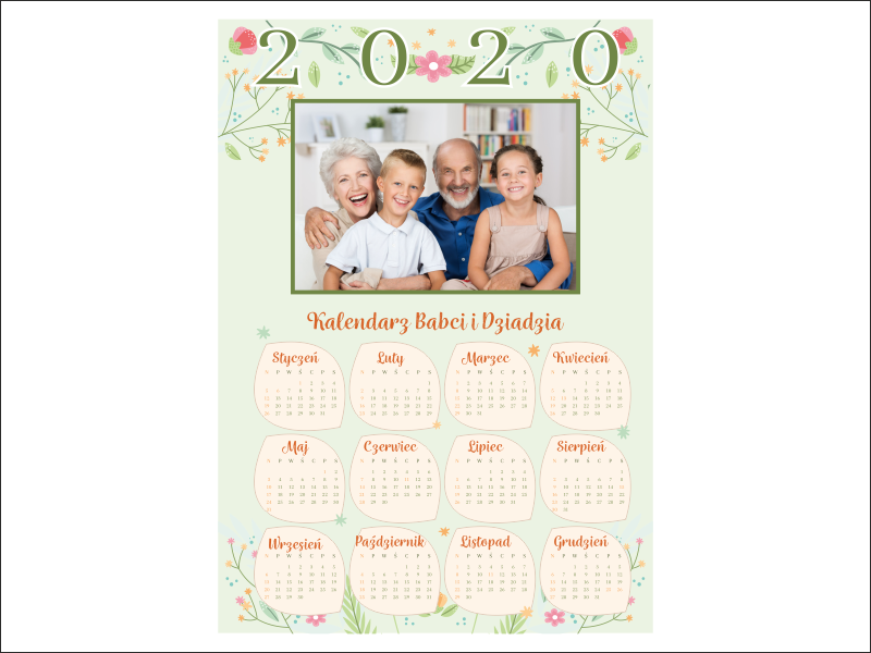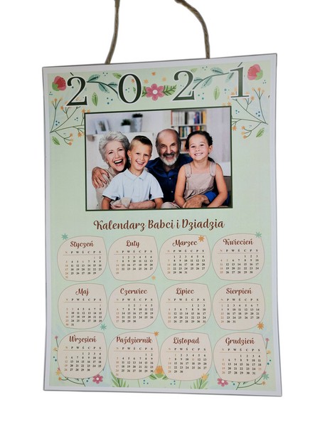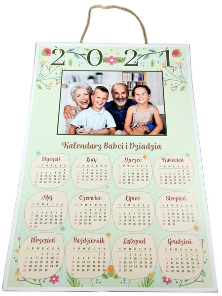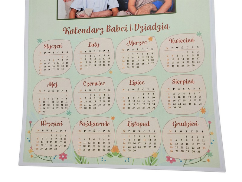 Wydrukowany kalendarz ma przewidziane miejsce na zdjęcie wnuczki, wnuka lub wnuków.