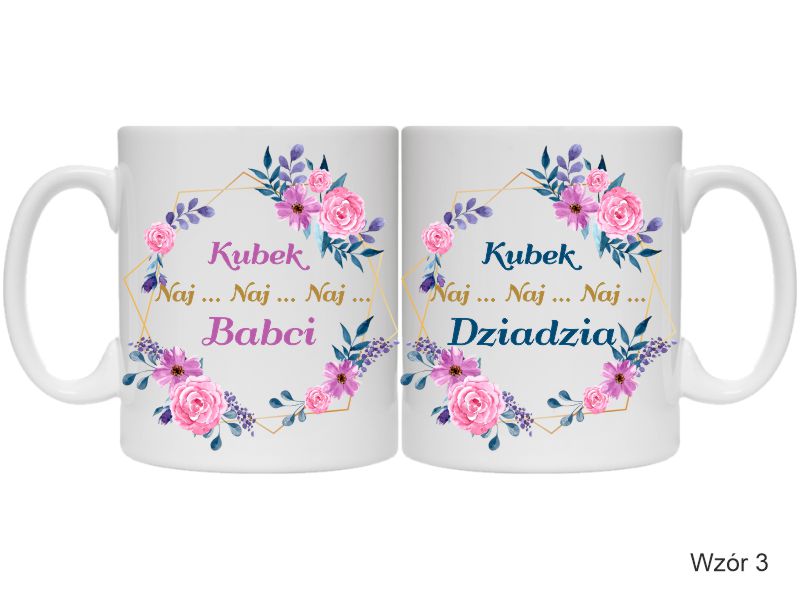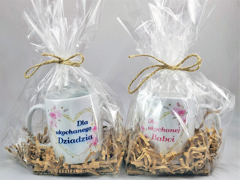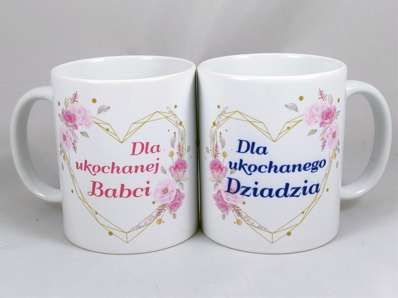Wspólny upominek dla Babci i Dziadzia w postaci kompletu dwóch kubeczków z nadrukiem.