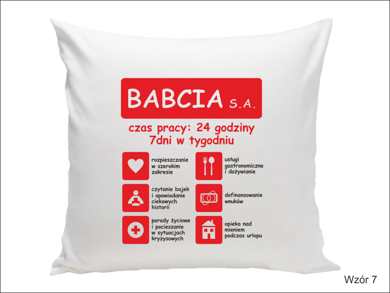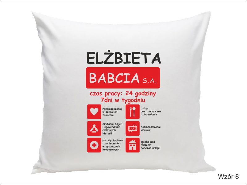 Inne modele poszewek z możliwością okolicznościowego nadruku na Dzień Babci znajdziesz w kategorii "Upominki/Poszewki z nadrukiem"