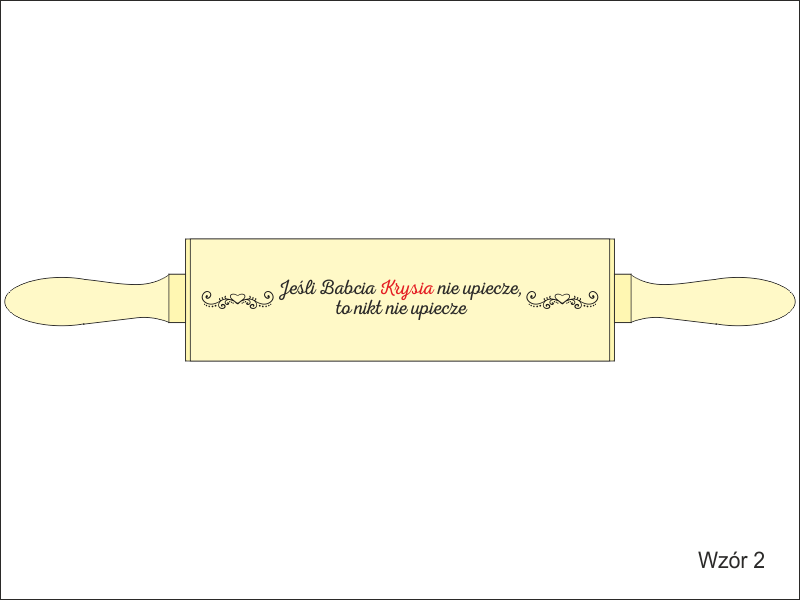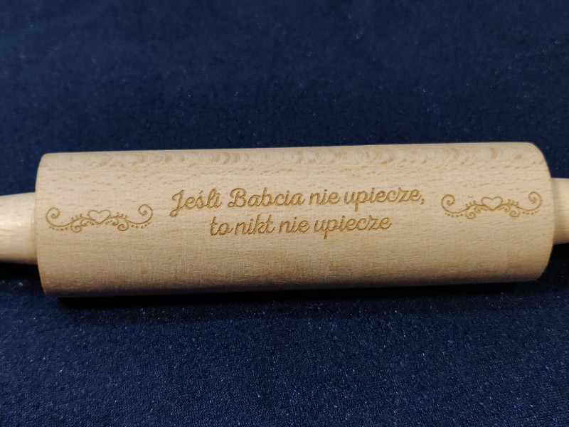 Na wałku wykonany jest grawer dedykacji "Jeśli Babcia nie upiecze, to nikt nie upiecze".