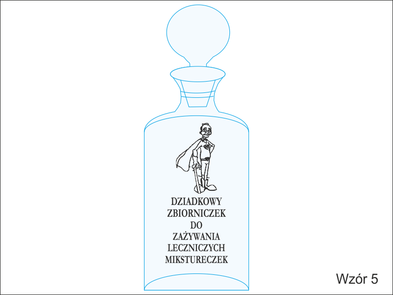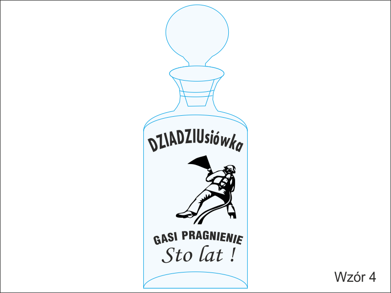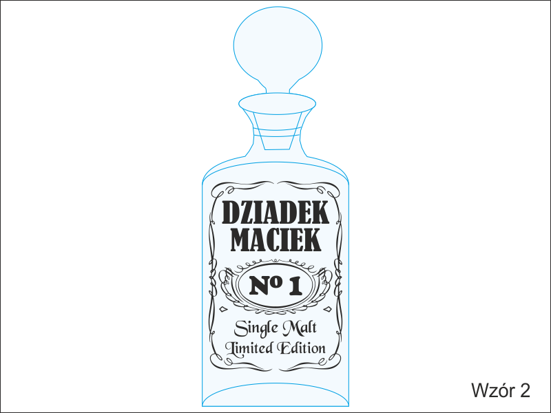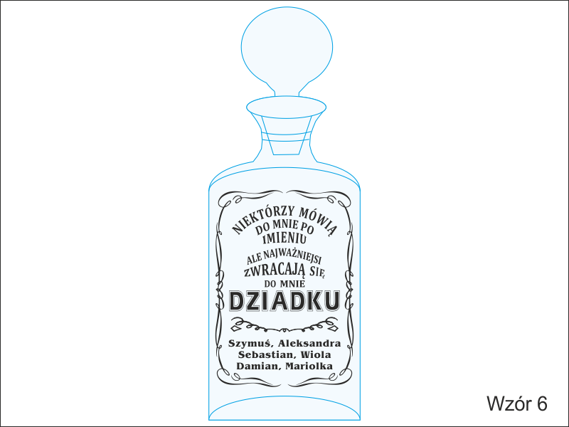Na karafce wykonany jest grawer ozdobnych grafik i dedykacji dla dziadka.