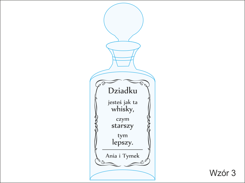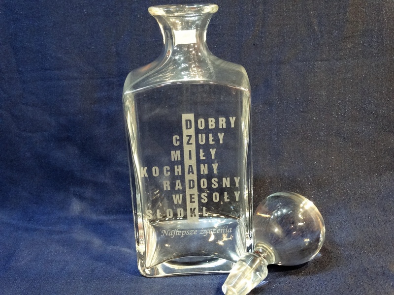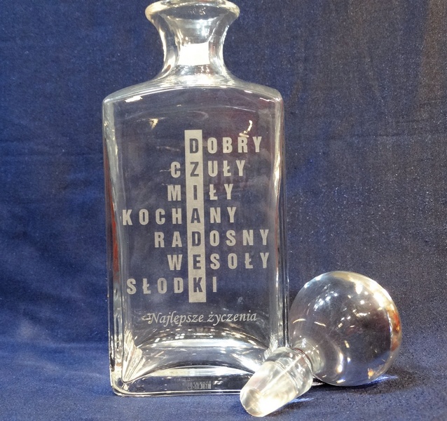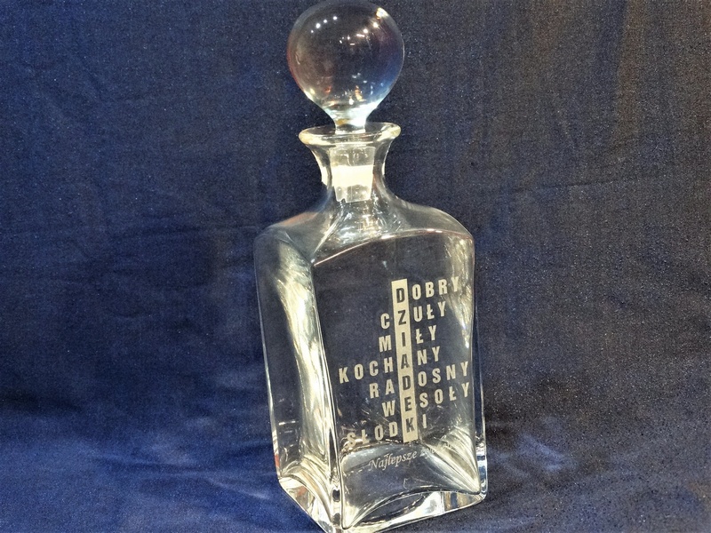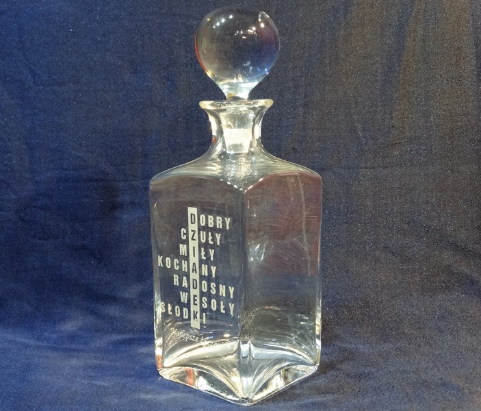 Wygrawerowana karafka może w szczególności sprawdzić się jako upominek z okazji Dnia Dziadka.