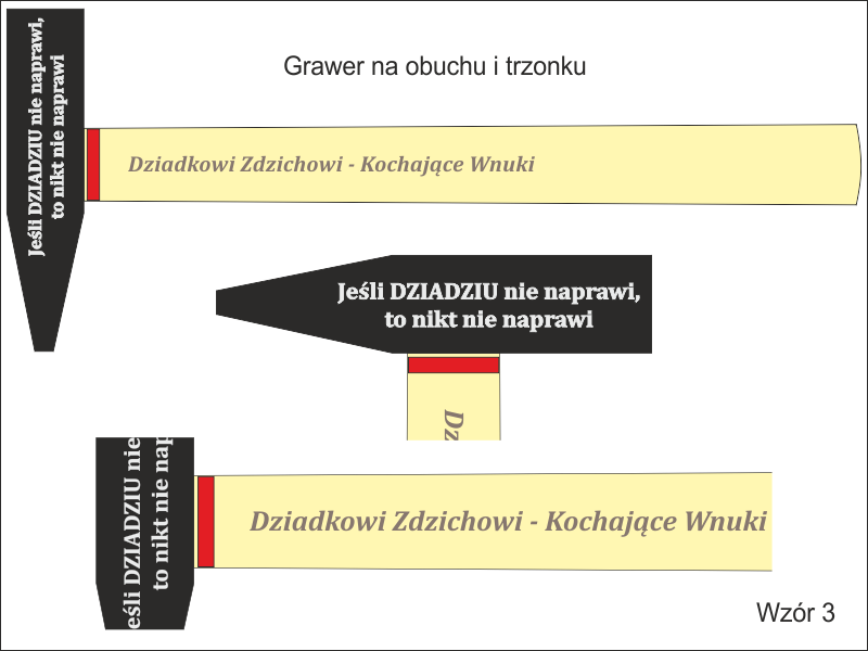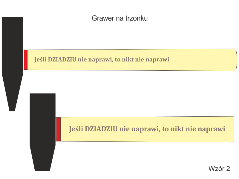 Grawer dedykacji możliwy jest zarówno na obuchu jak i na trzonku młotka.